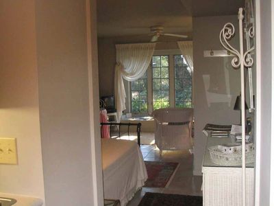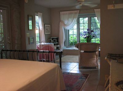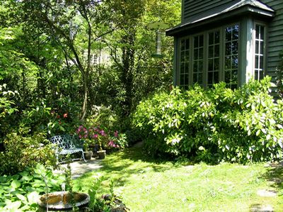 Our guest suite, designed for one or two adults, offers an inviting stay in a lovely garden setting just a block from Main Street. The location provides guests easy access to the town's shops, restaurants, activities, and events as well as to experiences in the surrounding area. The bay window in the suite and the swing and garden benches give guests spaces from which to enjoy the garden and view some of the species of birds attracted to the setting. In addition to enjoying the suite's setting, guests may want to visit the historic nineteenth century Episcopal Church across from the garden. After spending time on Main Street, guests can explore the town further by following the self-guided walks provided.